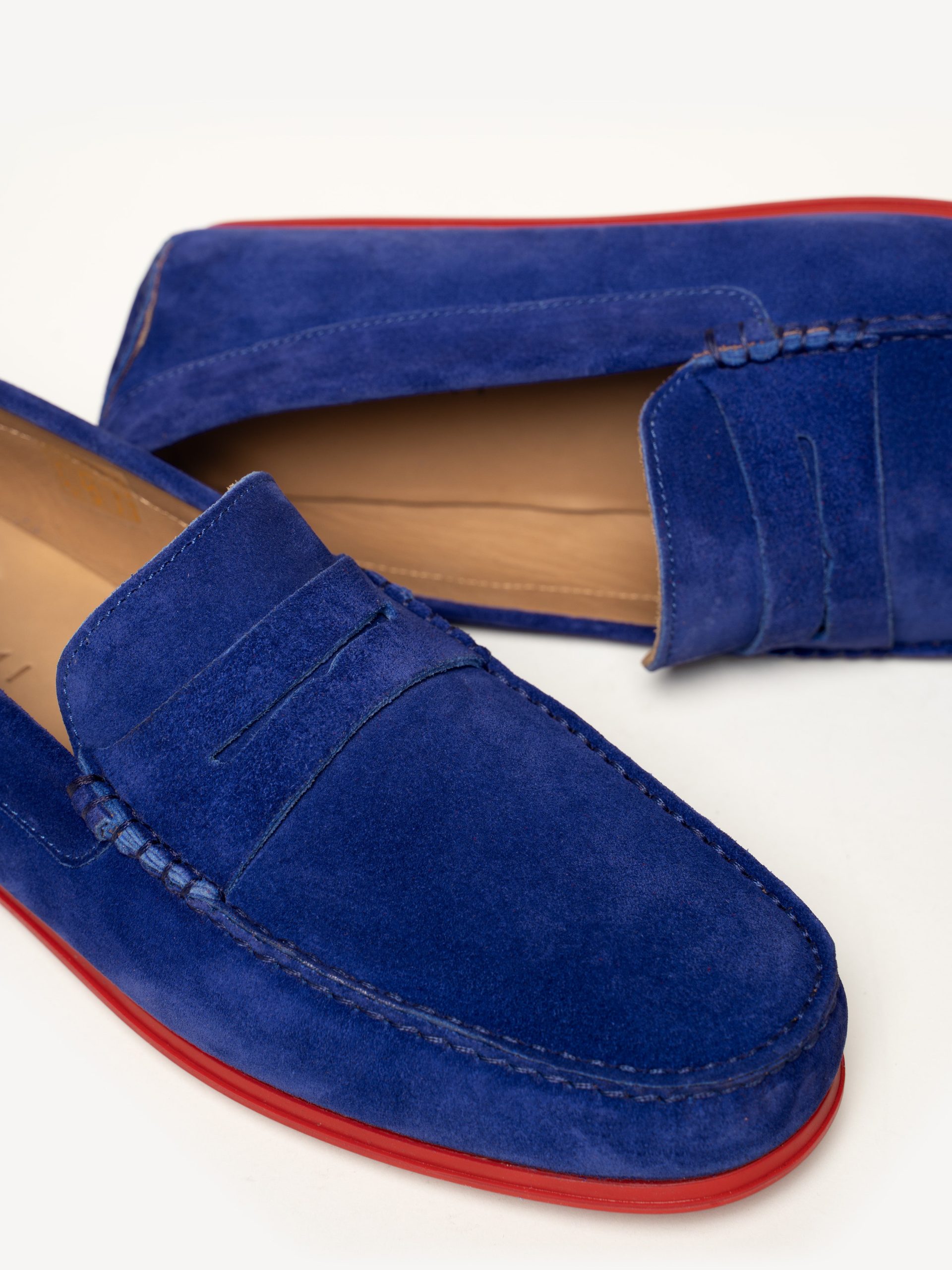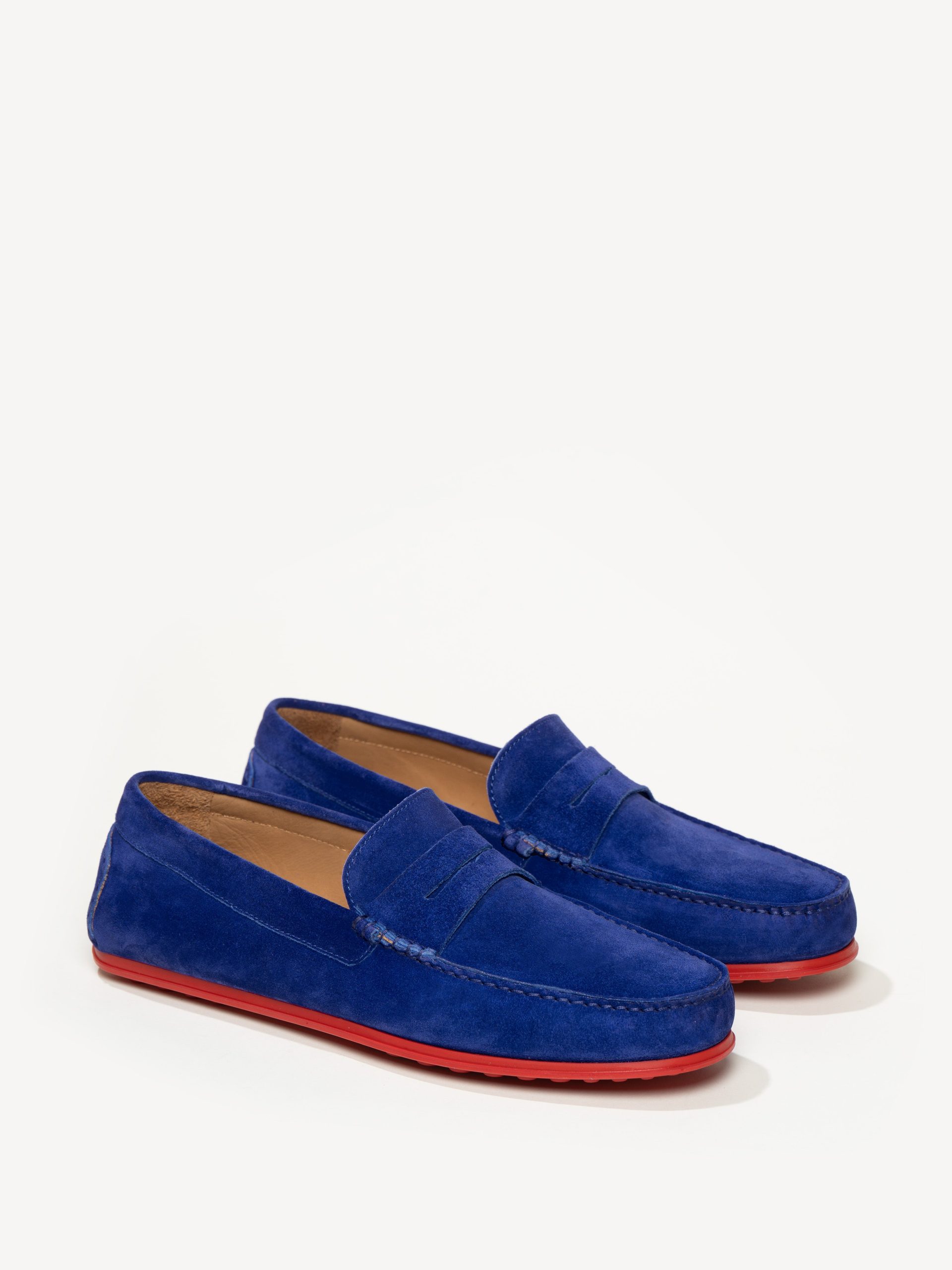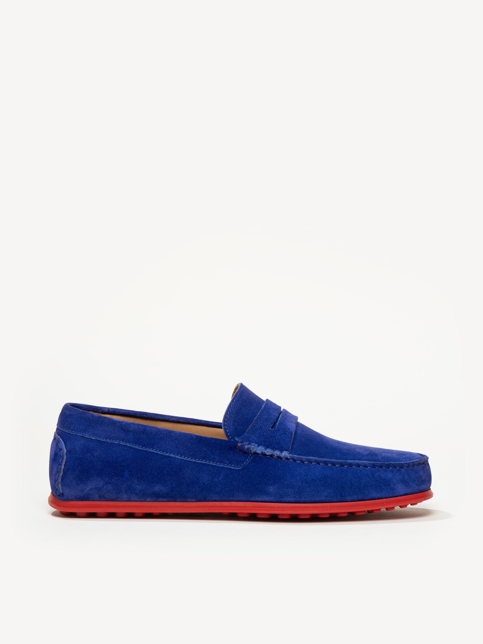 The men’s iterations of our signature penny driver, The Pastoso Uomo is made using true moccasin construction, which means one piece of suede is cut to form the sides and sole of the shoe, ensuring the softness and flexibility the style is known for. Every single element of these classic driving moccasins—including the